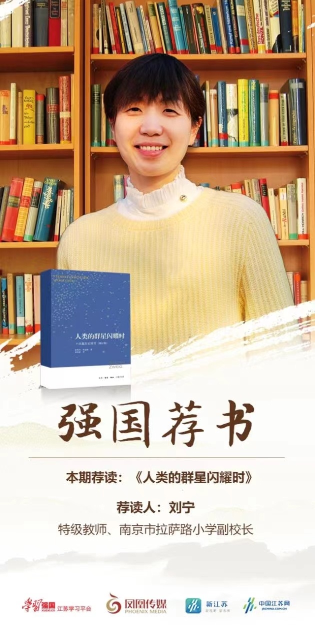 今天为大家荐书的是特级教师、南京市拉萨路小学副校长刘宁,推荐书目:《人类的群星闪耀时》,作者斯蒂芬·茨威格,三联书店出版。