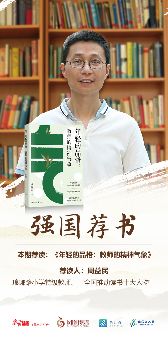 今天为大家荐书的是特级教师、“全国推动读书十大人物”周益民,推荐书目:《年轻的品格:教师的精神气象》,成尚荣著,长江文艺出版社出版。