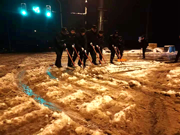中国江苏网1月9日讯 (通讯员 马惠琴 曲茜 史璐娟 王骁 朱磊 记者 罗鹏)2020年的第一场雪如约而至,巍峨金陵,银装素裹。然而,如果路面出现大量积雪,将会对市民出行造成严重影响。从昨夜开始,曾经创造了南京“一夜雪无”的城管执法队员与环卫工们便早早出动,彻夜未眠,清扫路面积雪。岁月静好,是他们为今天的南京畅通而“担当”前行。
