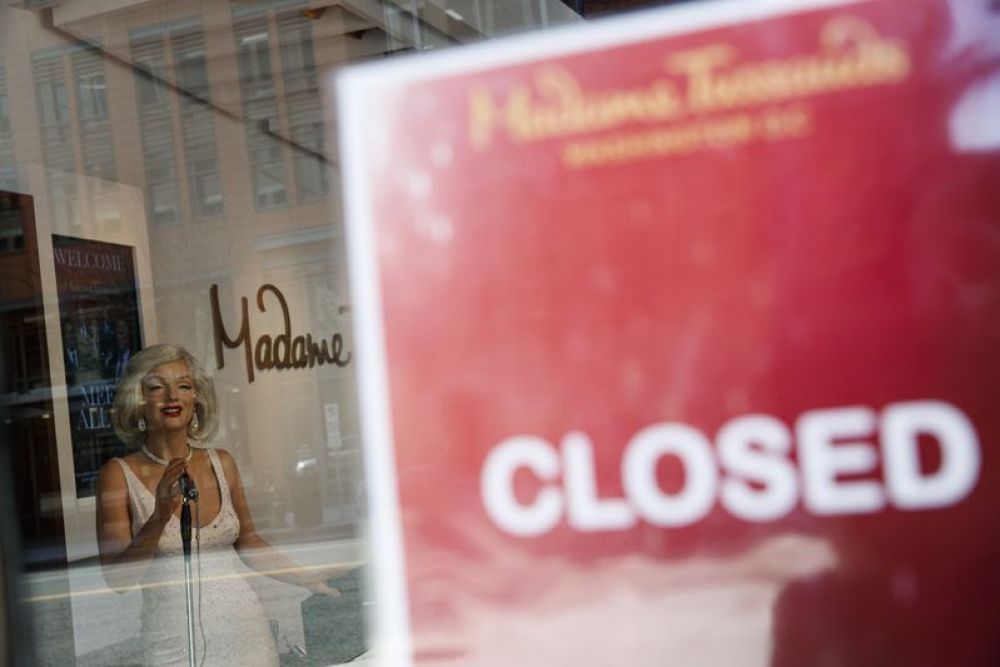 这是4月16日在美国华盛顿拍摄的关闭的杜莎夫人蜡像馆。(新华社发,沈霆摄)