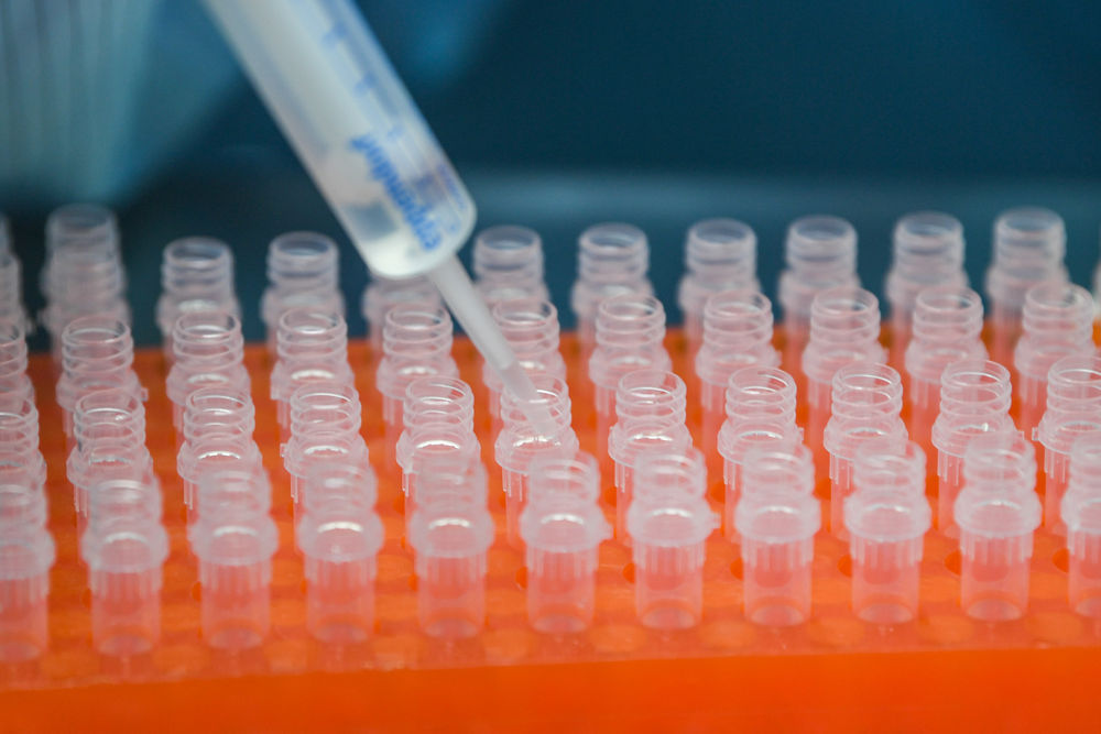 在江苏硕世生物科技股份有限公司,工作人员在分装新冠病毒核酸检测试剂产品(4月16日摄)。(新华社记者李博摄)
