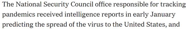 《纽约时报》与《华盛顿邮报》分别在报道中提及美国国家情报部门在1月3日便收到了关于新冠病毒在美国蔓延的预测。