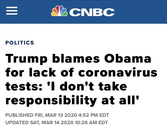 将疫情牵连政治之后,除了把“锅”甩给国外,特朗普对内也毫不手软。据CNBC3月24日报道,在美国新冠肺炎开始大规模流行后,美国总统特朗普开始频繁甩锅给前任总统奥巴马,并称自己对新冠疫情的暴发“不负任何责任”。