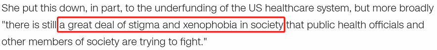 流行病学家兼助理教授纳迪亚阿布勒扎姆在接受CNN的采访时表示,“美国公共卫生官员和社会其他成员仍试图消除社会上的大量污名化行为和仇外心理。”