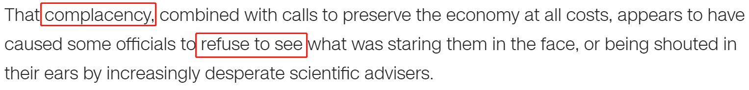 但可能诚如CNN的文章所述,“这种自满情绪,加上不惜一切代价维护经济的呼声,似乎导致一些美国官员拒绝看到他们面前的是什么,或是越来越绝望的科学顾问在他们耳边喊什么。”
