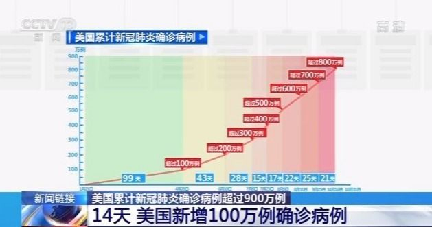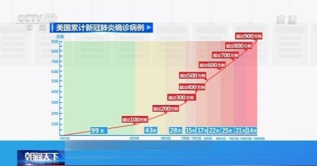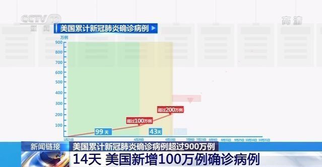 目前,美国累计新冠肺炎确诊病例已超过900万例。此前,从700万例到800万例,用了21天,而从800万例到900万例,仅仅用了14天——美国的确诊病例数攀升速度再次加速。