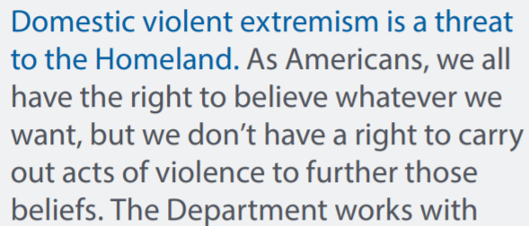 越来越多的人以信仰为名“合理化”暴力甚至美化暴力,成为一个令人担忧的趋势。10月份,由一些政治学家所做的民调发现,约有三分之一的美国人认为,通过暴力来推进政治目标是合理的,这一数字是2019年12月的两倍。美国国土安全部今年10月份的评估报告称,人们没有权利通过暴力行为让别人接受自己的信仰。