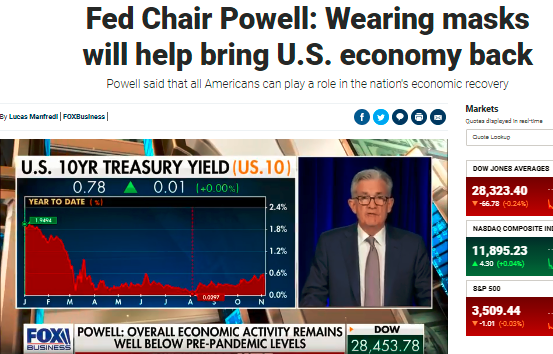 美联储主席鲍威尔在当天的新闻发布会上表示,美国病例的持续上升令人担忧,重申美国经济的复苏很大程度上取决于疫情控制的情况,而所有美国人都要在应对这一流行病的行动中发挥作用。