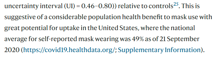 △《自然·医学》研究表明,美国民众口罩佩戴率仅有不到5成