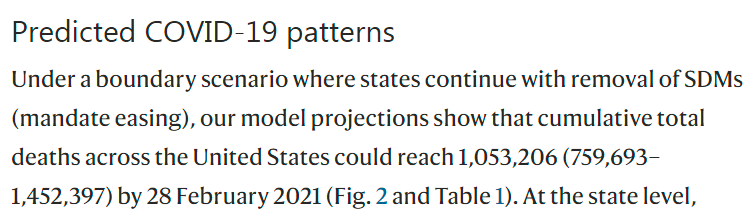 △《自然·医学》模型预测,到2021年2月,死亡人数或超过百万