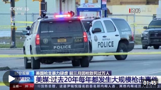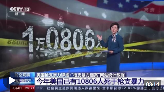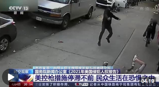 就在一个月之前的2月28日,国务院新闻办公室发表了《2021年美国侵犯人权报告》,这份报告指出:美国一直是世界上暴力犯罪率高企的国家之一。控枪措施停滞不前,枪支暴力问题丛生,民众生活在缺乏安全的恐惧之中。