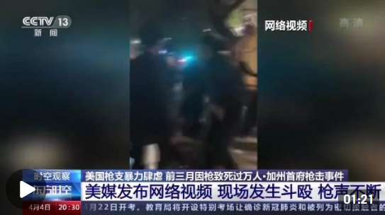 在萨克拉门托市发生的这场大规模枪击事件中,有美国媒体在报道中发布了一段据称是枪击发生时的现场视频。