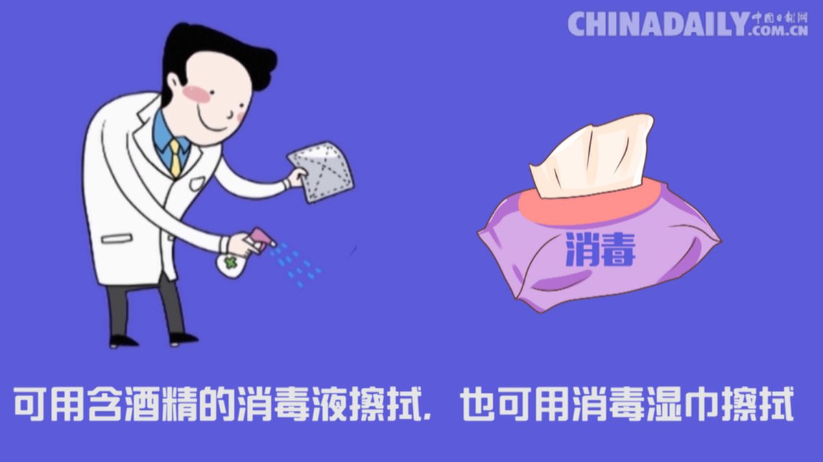 可用含酒精的消毒液擦拭,也可用消毒湿巾擦拭。