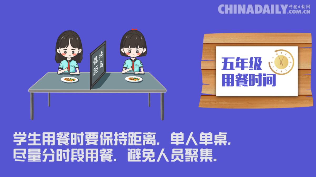 学生用餐时要保持距离,单人单桌,尽量分时段用餐,避免人员聚集。