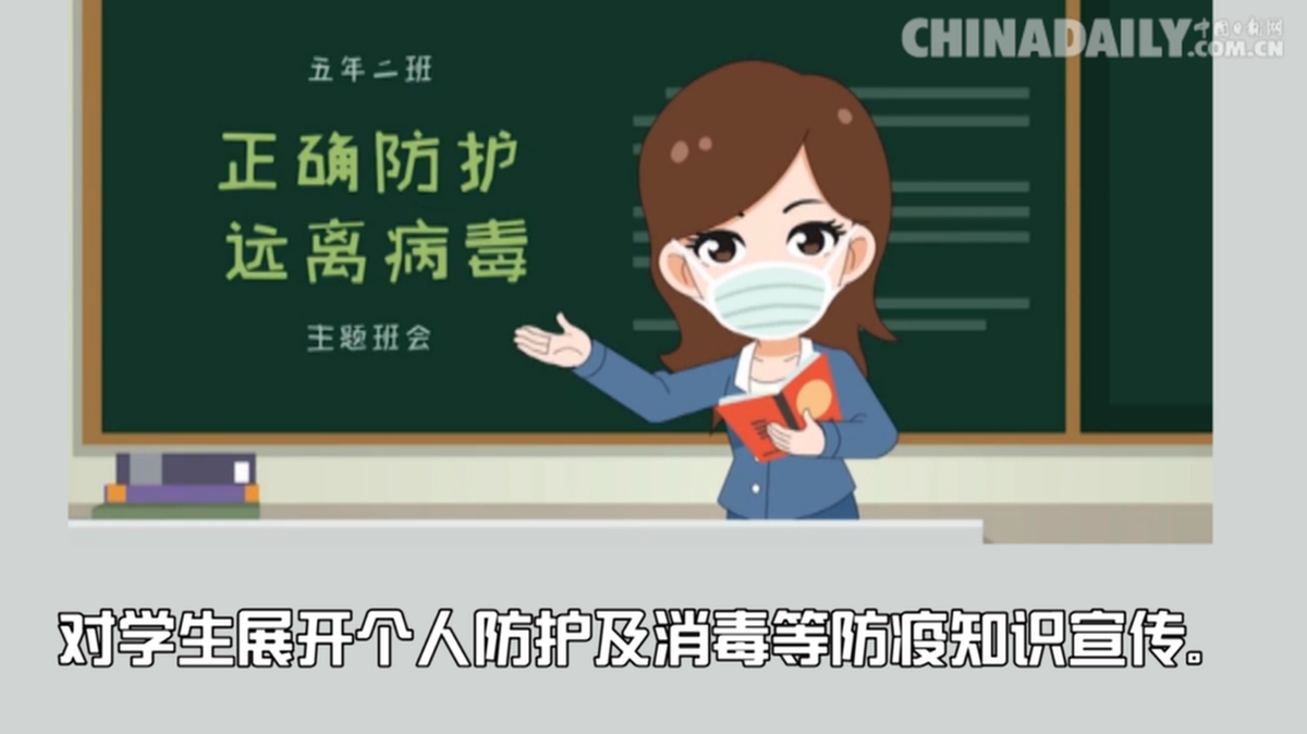 对教职工、学生及家长展开个人防护及消毒等防疫知识宣传。
