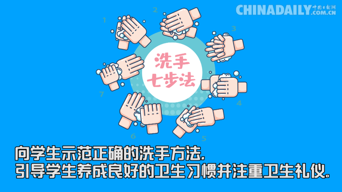向学生示范正确的洗手方法,引导学生养成良好的卫生习惯并注重卫生礼仪。