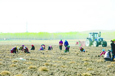 边墙村村民在起收中草药黄芪苗,准备再次移栽。