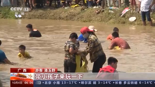 游客 潘玉群:因为放假了,带小孩子来玩一下,看着好激动,比他们抓鱼还要激动。