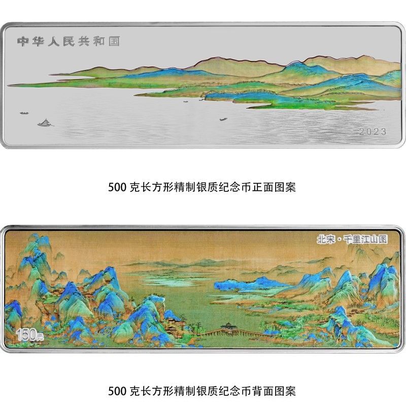 《千里江山图》被印刻在纪念币上是什么样?集币爱好者快来欣赏吧。