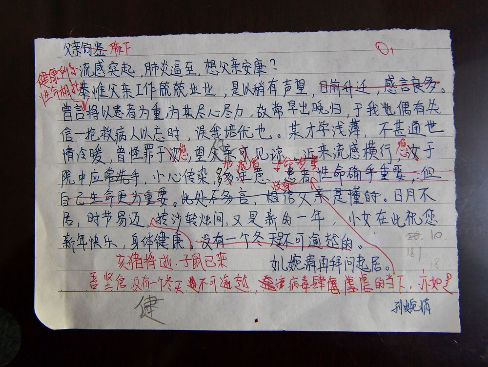 孙婉清写给父亲的家书草稿(1月29日摄)。新华社记者 李贺 摄