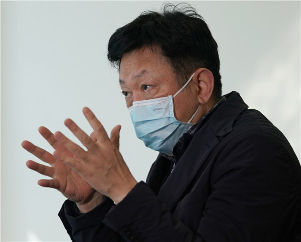 华中科技大学同济医院院长王伟接受新华社记者专访(2月18日摄)。新华社记者 王毓国 摄
