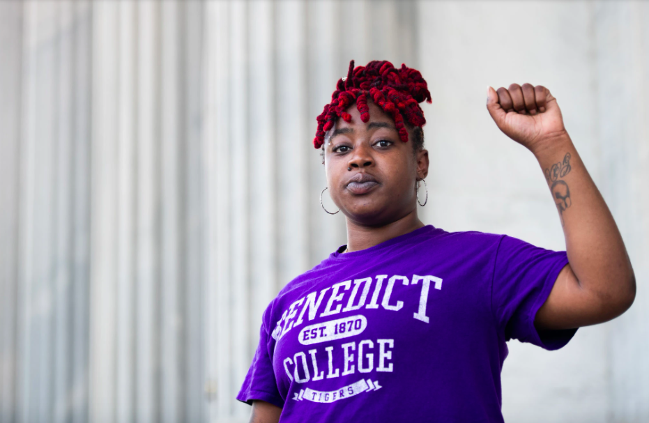 布拉汉姆是本尼迪克特学院的一名学生。5月30日,她来到南卡罗莱纳州议会大厦前,参加抗议活动,呼吁黑人权利。