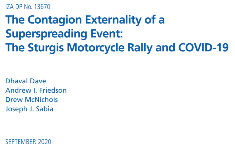 (《超级传播事件的传染外部效应:斯特吉斯摩托大会与新冠肺炎》 IZA劳动经济学研究所)