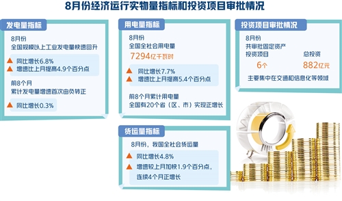 □ 随着各项政策措施持续显效发力,重大项目建设加快恢复,投资增速逐月回升向好。8月份投资增长8.4%,连续5个月保持正增长。