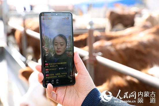 “想买啥样的牛就来百兴吐嘎查,我们有60多户的活牛超市可以任意挑。”巴胡塔苏木的党委书记梁旭滨正在百兴吐嘎查养牛户红石家的牛圈旁现场直播带货。