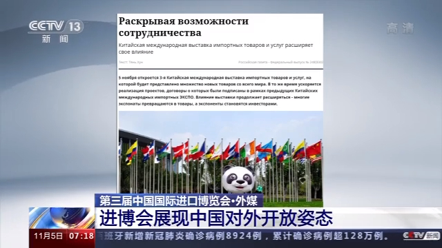 《俄罗斯报》评论指出,“进博会”的影响力正在不断扩大,许多大型跨国公司都为参加博览会进行了精心准备。中国通过“进博会”再次展现出了中国高度开放和希望寻求对外合作的决心。