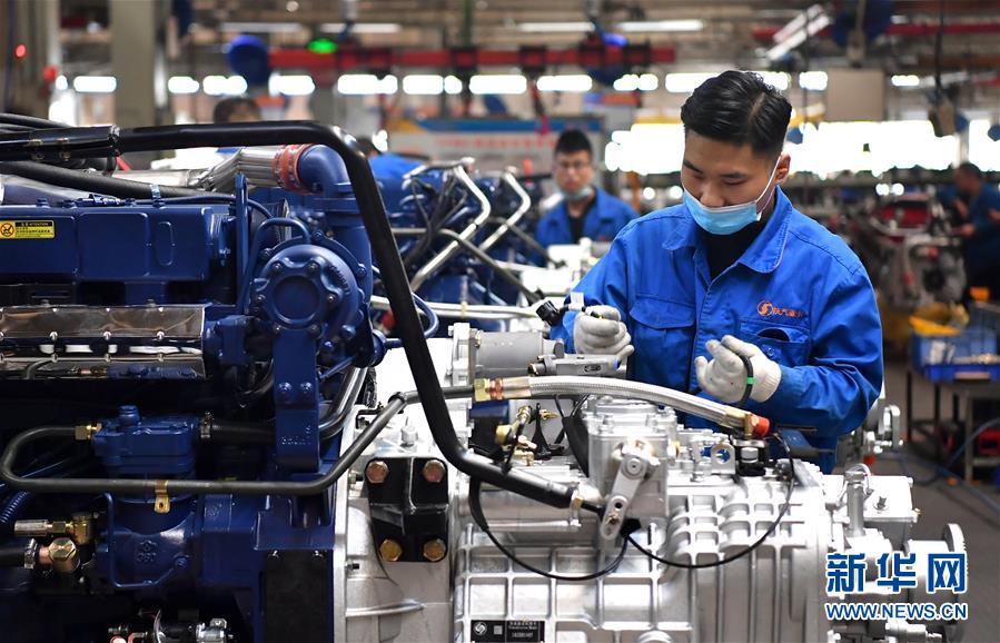 在位于西安的陕西汽车控股集团有限公司总装车间,工人在生产线上作业(11月2日摄)。新华社记者 刘潇 摄