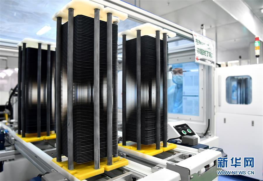 隆基股份西安电池工厂的工作人员在生产线上工作(11月2日摄)。新华社记者 刘潇 摄