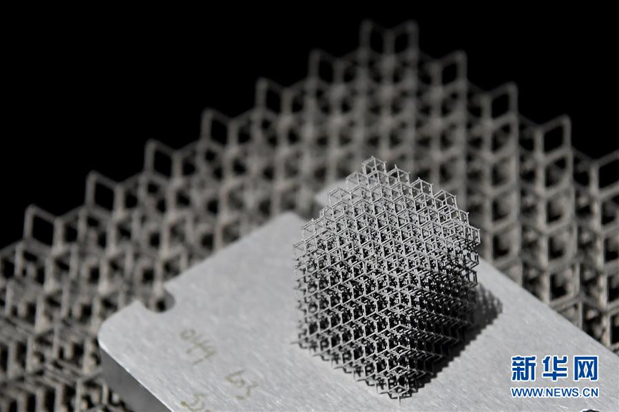 西安铂力特增材技术股份有限公司3D打印的“铝合金点阵结构”展品(11月3日摄)。新华社记者 刘潇 摄