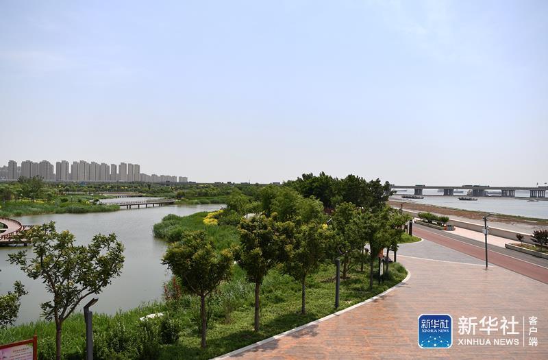 ↑这是天津市滨海新区中新生态城南堤滨海步道公园一景(6月8日摄)。新华社记者 李然 摄