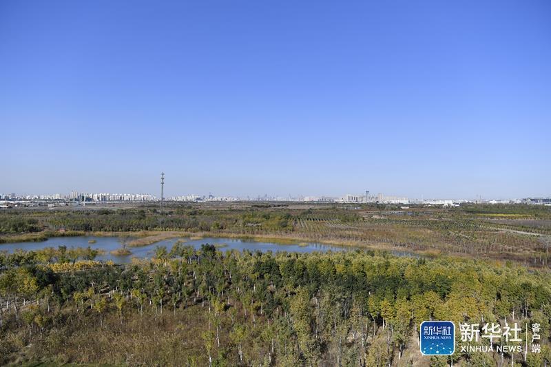 ↑这是在天津市津南区绿色生态屏障瞭望塔上拍到的风景(11月3日摄)。新华社记者 李然 摄