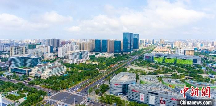 6月1日,中共中央、国务院印发的《海南自由贸易港建设总体方案》提出,率先在海南自由贸易港落实金融业扩大开放政策。资料图为航拍海口国兴大道CBD。 中新社记者 骆云飞 摄