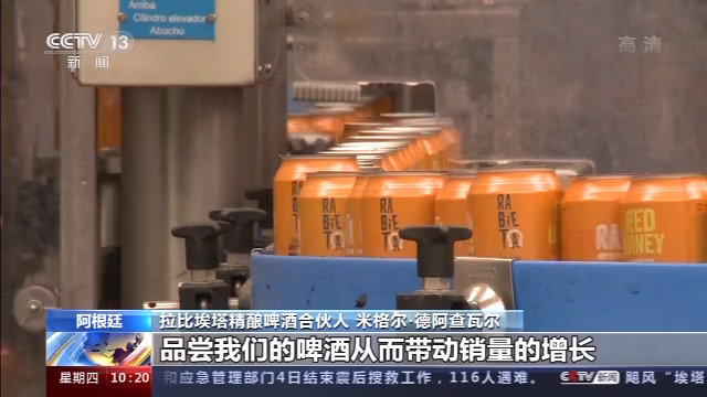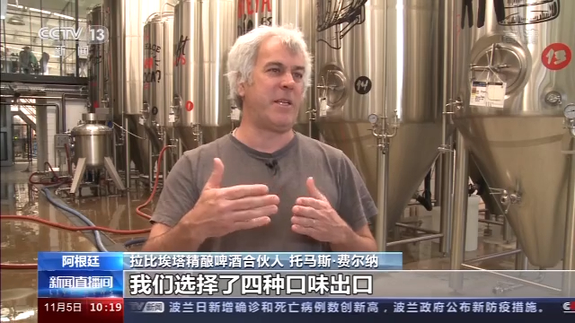 总台记者 刘欣:在我手中拿的这一款就是即将出口到中国的阿根廷精酿啤酒。为了能够更好地适应中国的市场,拉比埃塔公司也是进行了长时间的市场调研。根据中国客户的口味,最终是选择了包括在我手中这一款红色蜂蜜在内的四种阿根廷精酿啤酒。希望能够在中国的精酿啤酒市场上也能够占有一席之地。
