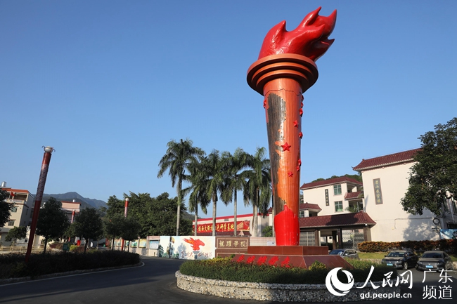 人民网揭阳11月5日电(赵唯淞)党旗、国旗、火炬、号角、革命战士冲锋陷阵的身影……11月5日傍晚,广东省揭阳市揭西县南山镇火炬村,放学回家的小学生骑着自行车,在一面面彰显红色文化的墙画间穿行。
