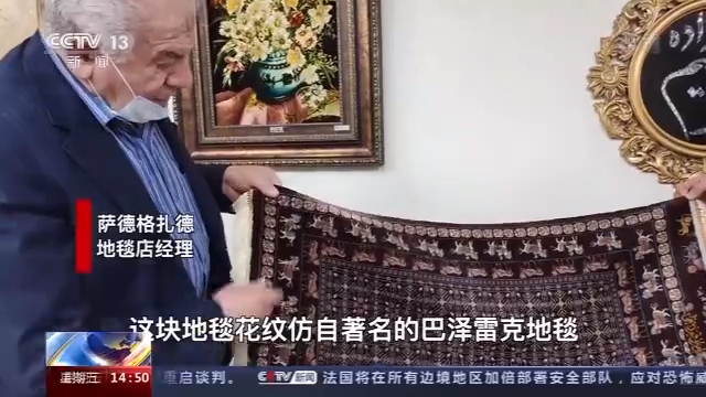 地毯店经理 萨德格扎德 :这块地毯花纹仿自著名的巴泽雷克地毯,巴泽雷克地毯大约2500年前编织的,收藏于俄罗斯圣彼得堡埃尔米塔日博物馆。