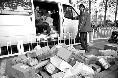 在北京市海淀区知春路一处快递分发点,快递小哥正熟练地分拣快递物品。随着“双11”强势来袭,电商集中促销让购物消费进入旺季。早上六点到晚上十点左右,成为快递小哥一天中最忙碌的时刻。光明日报记者郭俊锋摄/光明图片
