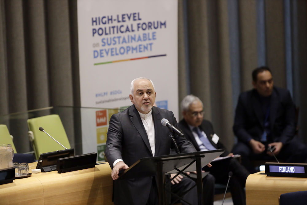 2019年7月17日,伊朗外长扎里夫在纽约联合国总部的会议上讲话。扎里夫当日在会议上指责美国对伊朗施加的经济制裁,认为这是“经济恐怖主义”霸凌,是伊朗等国实现可持续发展目标的“最大威胁”。新华社记者李木子摄