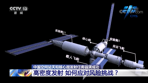 中国载人航天工程总设计师 周建平:这个风险和挑战,我认为是全方面的、全方位的。关键技术验证和建造就在这两年——实际上是20个月内,我们要发射11次。以后我们每年还要发射两次载人飞船,一艘到两艘货运飞船。这么大量的发射任务,保证每一个飞行器可靠发射,火箭能够把飞行器送入预定轨道,保证每个飞行器在轨安全可靠地运行,除了核心舱以外,其他的都和我们的空间站对接。航天是一个高风险的事业,这是毋容置疑的,也不能回避的。所以说它考验我们的组织能力、管理能力、保障能力、技术能力等等,是一个全面的考验。