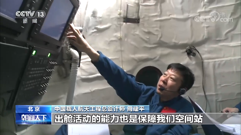 中国载人航天工程总设计师 周建平:我们空间站的建造是要依靠航天员在舱外完成大量的复杂的活动,才能达到目标的,所以对航天员出舱的能力要求那要高很多,出舱活动的能力也是保障我们空间站顺利建造完成的很重要的技术支撑。