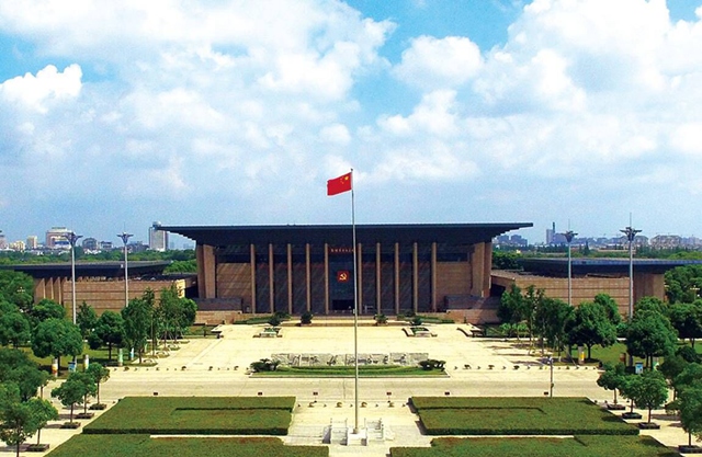 航拍南湖革命纪念馆。