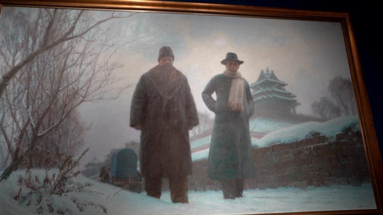 嘉兴火车站复古站房油画《开天辟地》。