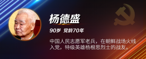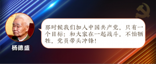 “只有共产党是从苦难中走出来的,追求人人平等,所以我一直就很向往。在长津湖打完仗,想介绍我入党的老班长牺牲了,介绍人也就没有了。后来我就找到我们新的班长,说了我的想法,他说指导员曾跟我讲过这件事,我愿意当你的介绍人,介绍你加入中国共产党。”就这样,1951年,20岁的杨德盛在朝鲜原山里火线成为了一名光荣的共产党员,如今已有70年党龄。