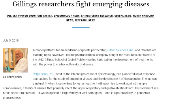 美国病毒“功能增益”研究的权威,非北卡罗来纳大学流行病学系以及微生物系和免疫学系教授拉尔夫·巴里克(Ralph Baric)莫属。
