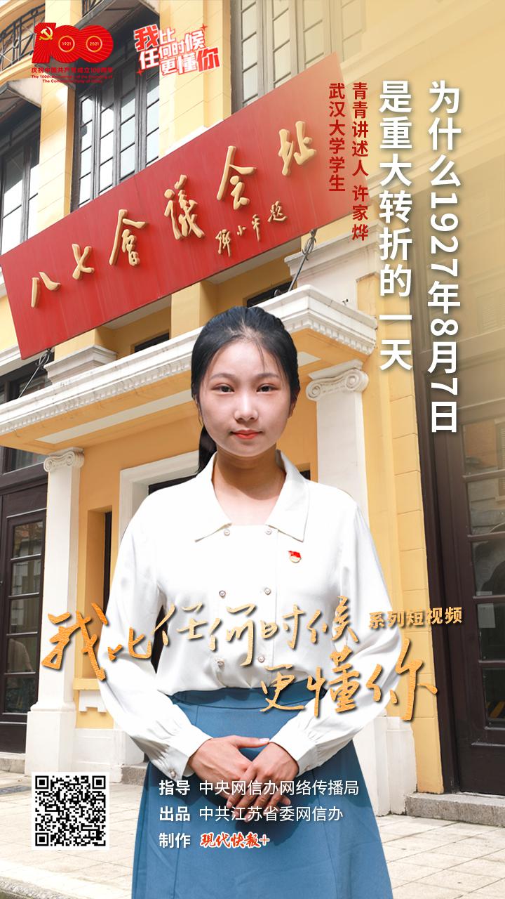 8 月 7 日," 我比任何时候更懂你 " 系列短视频第 14 集《为什么 1927 年 8 月 7 日是重大转折的一天?》上线,本集青青讲述人是武汉大学 90 后博士生许家烨。