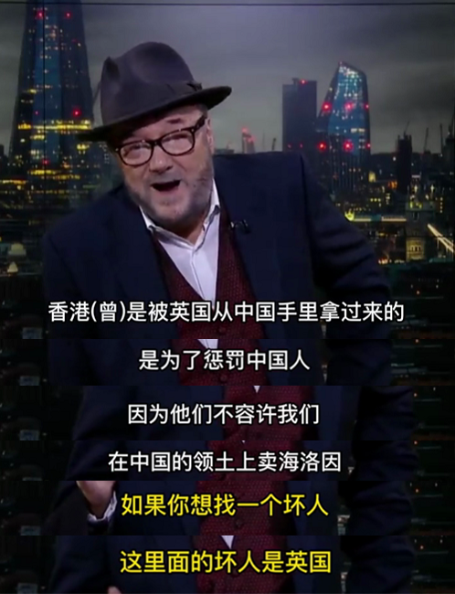 听到来电观众声称“中国要接管世界”,英国前国会议员乔治・加洛韦(George Galloway)当即反驳,顺便还帮此人普及了下鸦片战争英国侵略中国,割占香港的黑历史。