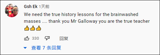 “我们需要给被洗脑的大众上真正的历史课....谢谢你,加洛韦先生,你才是真正的老师。”
